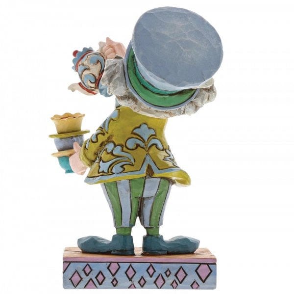 Celebrate a very merry unbirthday with this Mad Hatter Personality Pose. Designed by folk artist Jim Shore, the eccentric Wonderland resident is overflowing with energy as he pours more tea. It's always tea time with this endearingly zany character.