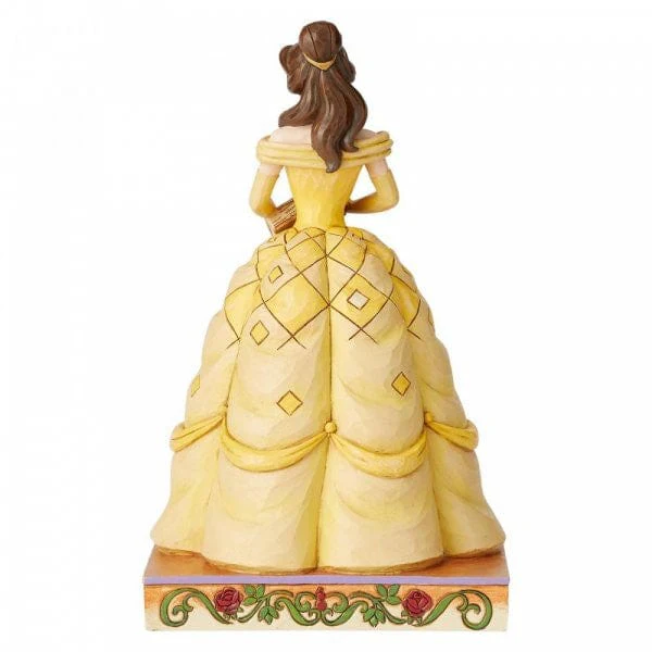Belle always has her nose in a book, filling her imagination with adventure. The book-smart beauty begins her own timeless tale when she meets the Beast. In this lovely Jim Shore design, Belle wears her classic yellow gown and holds a book in her hands. Unique variations should be expected as this product is hand painted. Packed in a branded gift box. Not a toy or children's product. Intended for adults only.